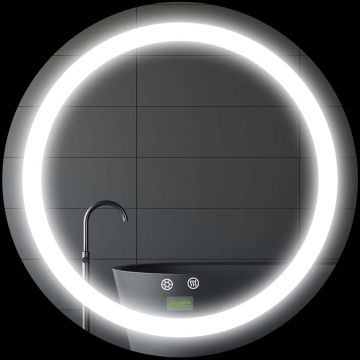 Kleankin Oglinda de Baie Rotunda cu Lumina LED in 3 Culori si intrerupatoare Touch, Ø70x3.5 cm, Transparent | Aosom Romania